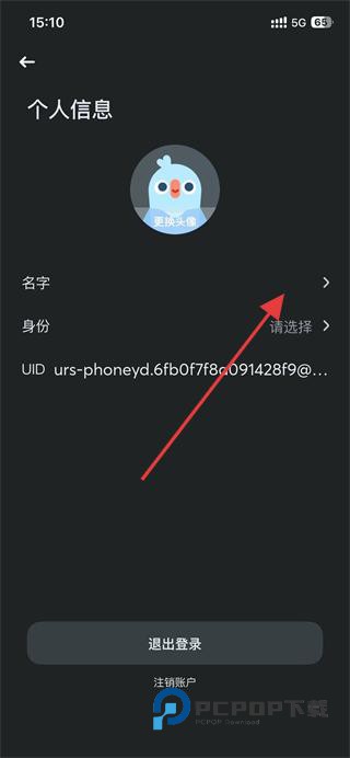 3、在个人信息页面,找到并点击上方名字选项。