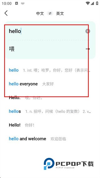 4、在搜索结果中,即可查看该单词的翻译内容。