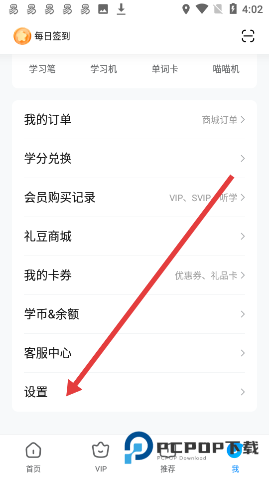 1、打开作业帮APP,进入个人页面,下滑找到并点击设置选项。