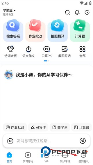 1、打开作业帮主界面,找到底部的签到有礼选项,点击该选项进入签到有礼页面。