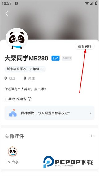 3、在个人资料页面,点击右上方的编辑资料选项。