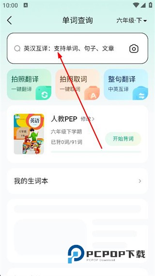 2、在单词查询页面,找到并点击顶部的搜索框。