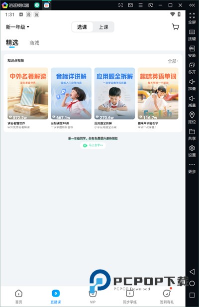 5、点击同步学堂选项可以查看当前年级的课程,在这里可以选择对应的课程进行练习,每天上完课后来这里做个小测验吧。