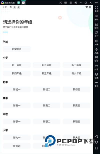 2、登录后选择自己的年级,这里提供学前、小学、初中、高中、中职以及高中等多个年级;