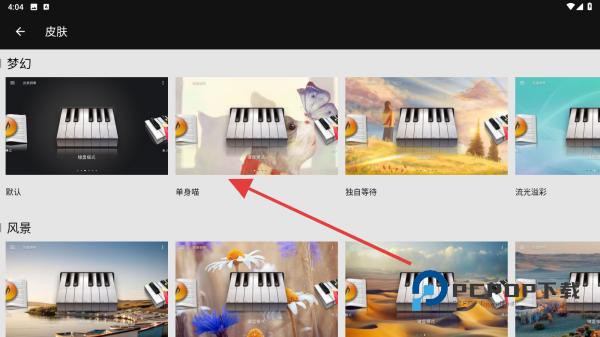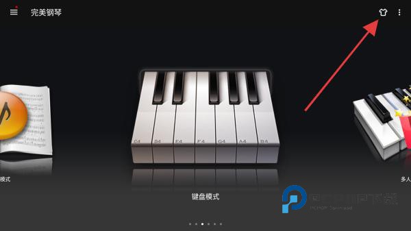 1、打开模拟钢琴App,主界面点击右上角的皮肤图标,进入皮肤的设置页面。