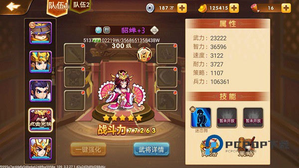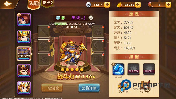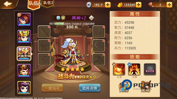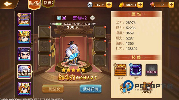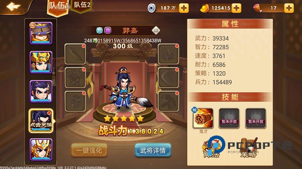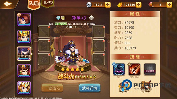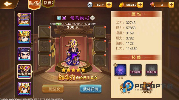 但需要注意的一点是,光凭武将个人的能力还不够,你还需要搭配出一个合理的阵容,每个玩家最好是要有一个军师和四名将军,其中将军最重要的是武力、速度、耐力以及兵力,当然武将不只注重属性,还要注重武将技能,因为技能可以增加伤害和我方的抵抗能力。而军师的话最注重的属性有智力,速度及策略,只要这些属性越高,玩家的武将也就越厉害!
