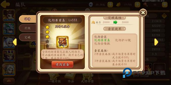 整体评价:虽然化劲套的组件和套装属性不如冰火套和七星套,但是部分武将带着玩玩还是可以的。比如马超,董卓,曹仁这些不太依赖武力打伤害的将。