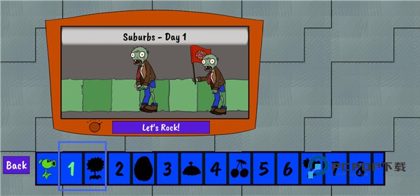 2、点击数字进入关卡,后面剪影是通过该关可解锁的植物。