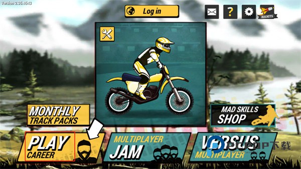 1、双击打开疯狂摩托车技2游戏,点击游戏左下角的PLAY进入游戏游玩;