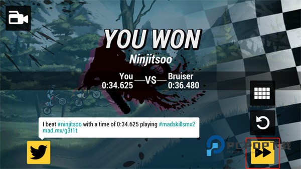 7、当玩家比敌人先冲过终点游戏即可通关,通关后玩家可以点击游戏右下角的下一关来进行游戏;