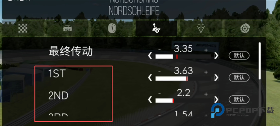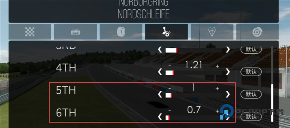 5、感到乏力时,就说明原厂的的已经到极限不能用了,现在就要调动最终传送或者最后一个档位。推荐直接调最终传动,把数值调小,估一个极速。