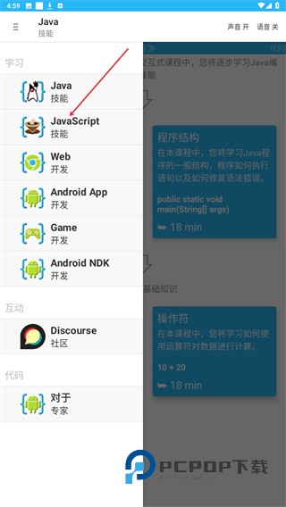 2、在左侧弹出的菜单栏中,选择并点击JavaScript。