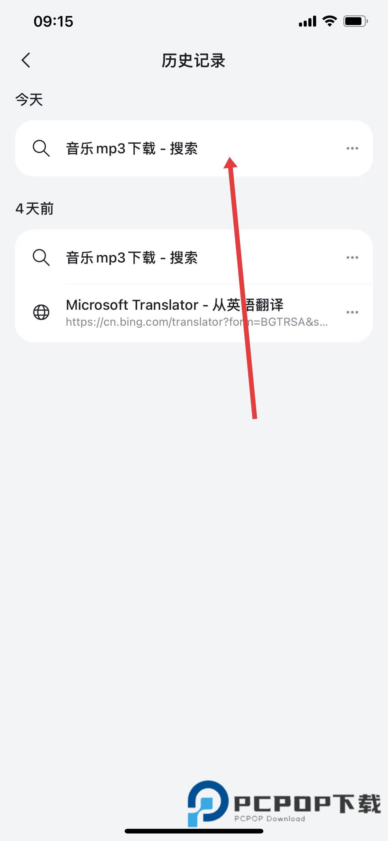 3、进入历史记录页面后,就能看到搜索历史记录列表,点击其中一条记录。