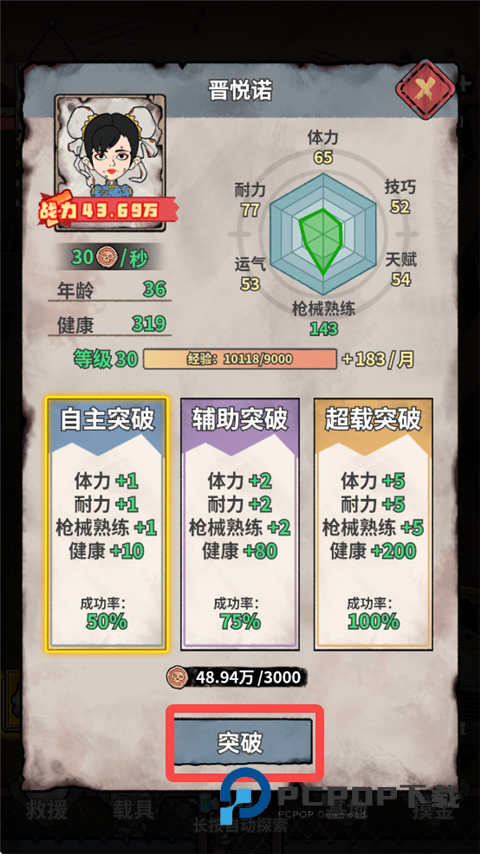 4、各角色到达可突破的等级时,玩家可在三种突破方式中选择。