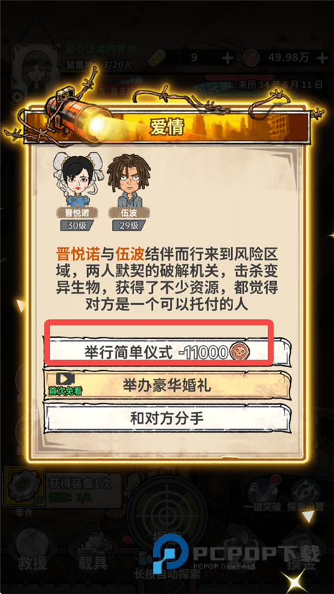 3、选择【举行简单仪式】可结为伴侣,壮大家族。