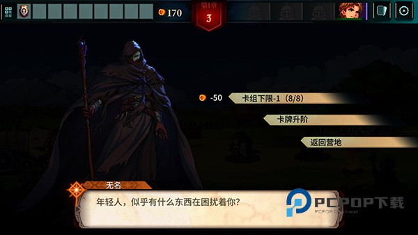 2、玩家可以通过营地商店购买战斗卡牌,商店卡牌可以刷新,金额为0可以无限刷新,玩家可以多刷一次看下卡牌说明然后决定玩什么。