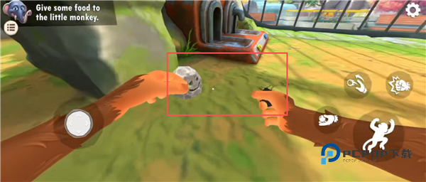 7、接下来需要给一些事物给这个小猴子,先来到这个石头旁,可以拿到一只虫子扔给小猴子,但它不吃。