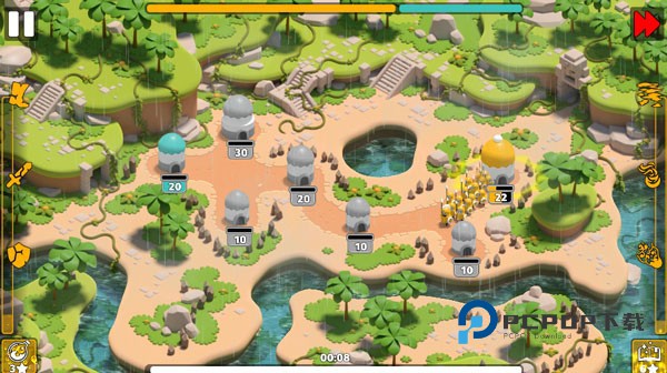 1、游戏开始时你将拥有一座或多座屯有兵力的堡垒,你的目标是占领那些未被开拓的堡垒,一步步囤积士兵,运用谋略与智慧消灭其他敌方士兵,赢得战局胜利。