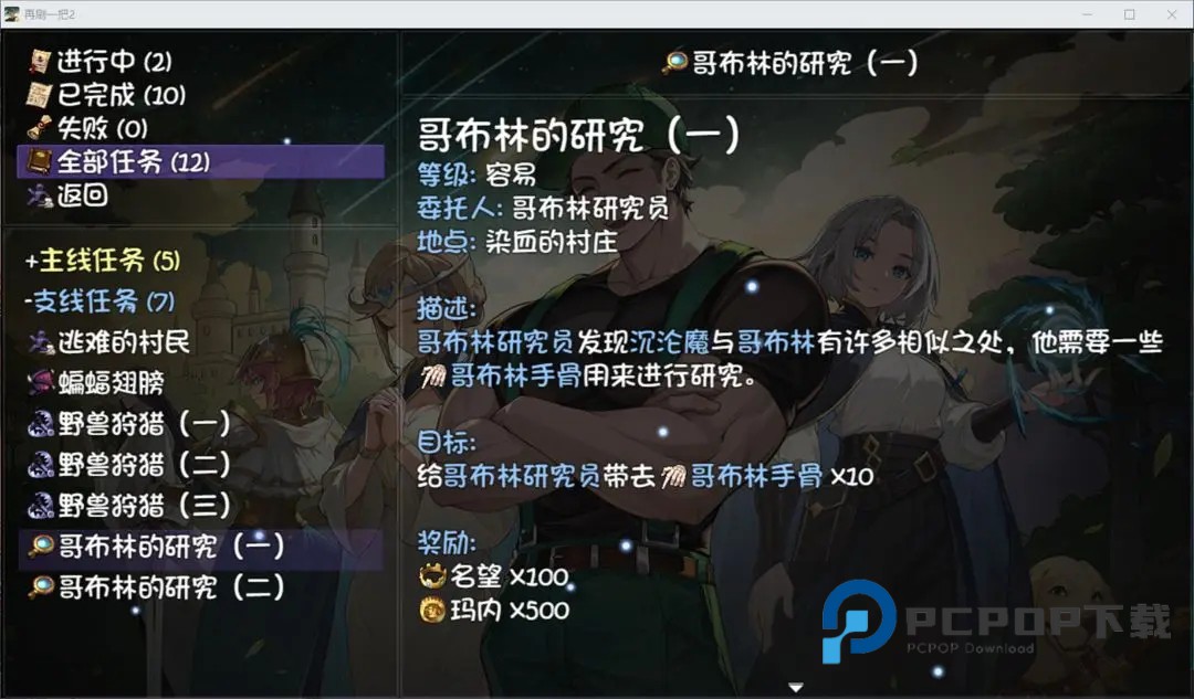1、哥布林的研究与学者对话,接受一阶段任务,给他我们在第一层刷到的10个哥布林手骨。
