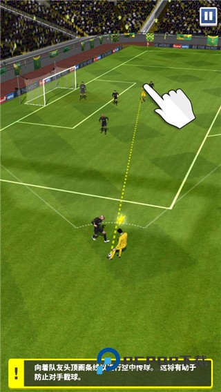 1、玩家可以在角色的可控范围内通过滑动屏幕来传球或是射门。每一关需要玩家通过这样的操作来传球直到攻破敌方的大门位置。如果从定点传球和定点射门的角度来说,本作的难度的确不高。毕竟不能达到像实况或者fifa那种操作流畅程度。