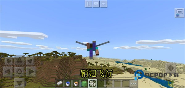 3、调整好方向,装备鞘翅后就可以从平地上起飞了。