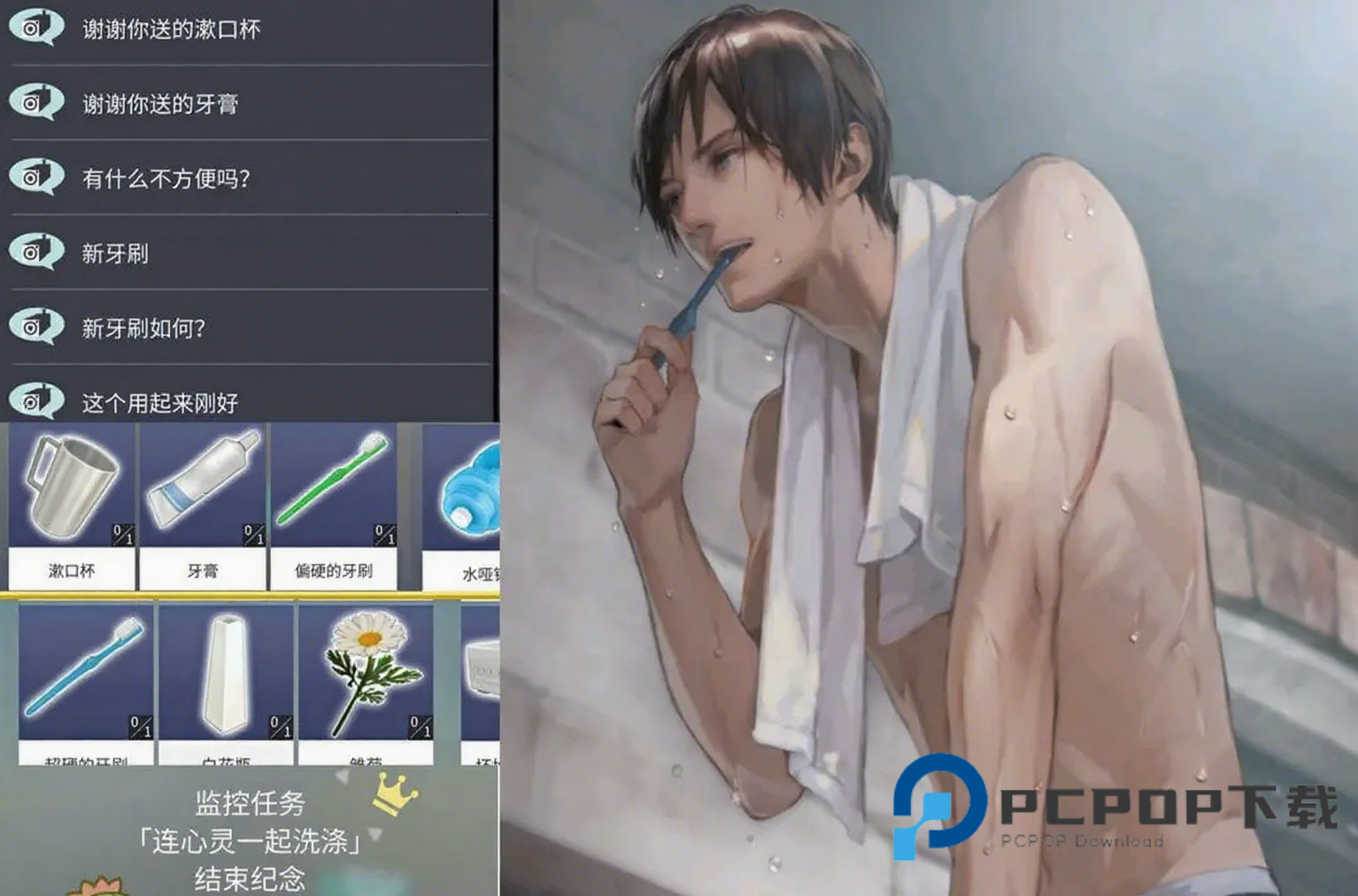 杂货店处购入「漱口杯」「牙膏」「偏硬的牙刷」「超硬的牙刷」。