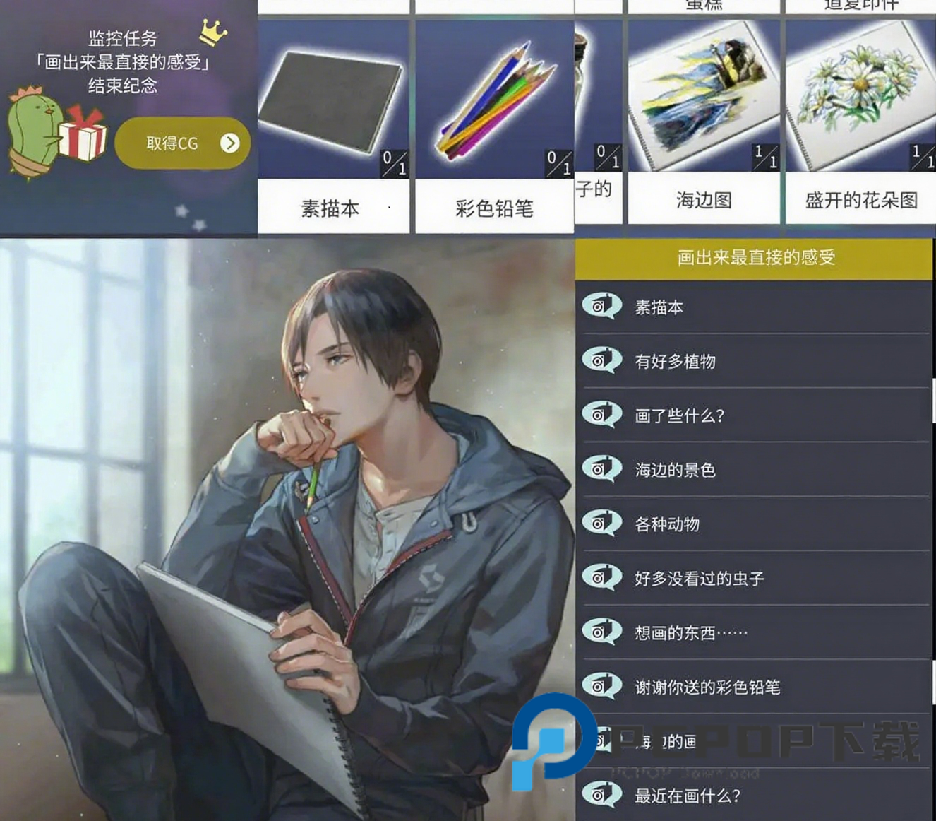 获得CG前会收到一个晴人送给你的包裹,里面是一张雏菊画,海边的风景画和CG达成条件无关,但是他也会送。