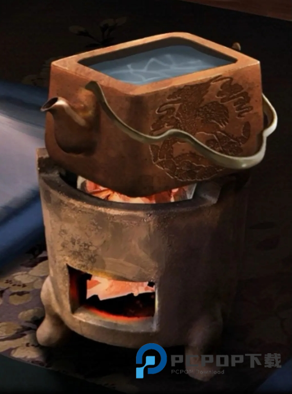 7、回到房间中倒入热水,放进茶宠得到提示,根据图案提示解开下图的盒子得到青花瓷球。