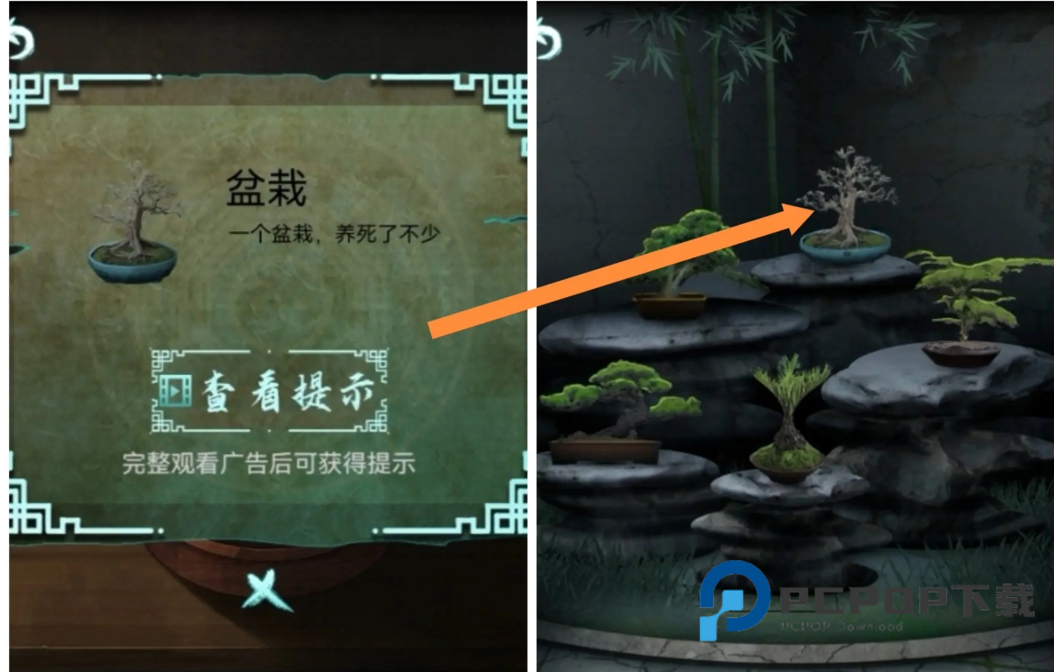 10、在正屋中拿到盆栽,前往假山处,放上盆栽,根据提示移动盆栽的位置得到八卦盘,将八卦盒放在棺材的凹槽处。