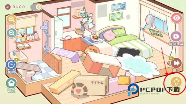 4、以"搬家日记"关卡为例,玩家可运用游戏内提供的各种道具来布置房间