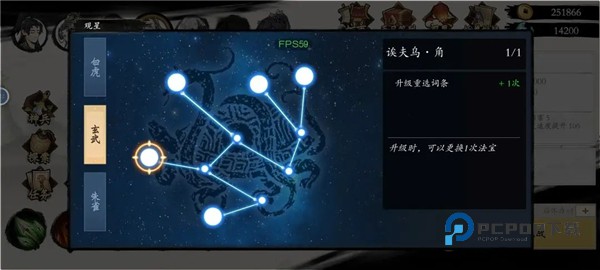 6、图内可以免费刷新一次选择法宝,观星点出玄武系法宝刷新后可以多一次,是每次升级都能换一次。