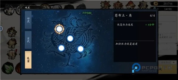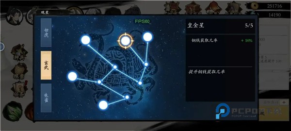 2、再去点观星!观星在界面右上角,观星没点满前可以重置!喜欢刷图的把朱雀系体力恢复加速点出来!然后旁边的挂机时长后面再点!