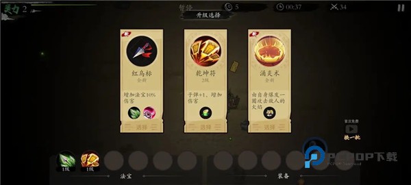 1、每次升级都会有可选的技能,合理的搭配不同的技能才能更好的通关游戏。