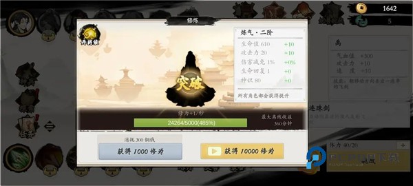 4、前期修炼想加速的加速,不要用铜钱升,不划算!到了筑基后没必要了,获得的神兵需要神识才能装备上。有上限不必强求。初始有80每个小突破加5.这个修炼系统有毒,逢五就有一个经验坎,自行体会。神识到280基本能准备全六个神兵!