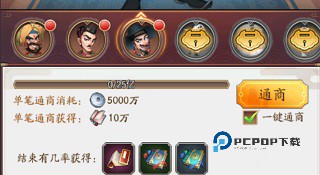 通商需要耗费银币,当开始通商之后,冷却时间会有一个小时,如果想要缩短,最好用葡萄美酒,还可以隔了一个小时再通商,可以加快速度。