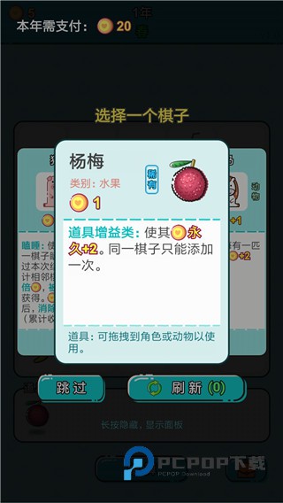 4、杨梅,可永久性增加两个金币,同一个棋子只能加一次。