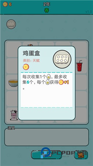 3、鸡蛋盒,每次收集一个鸡蛋,最后可以收集六个,每收集一个就能获得一个金币。