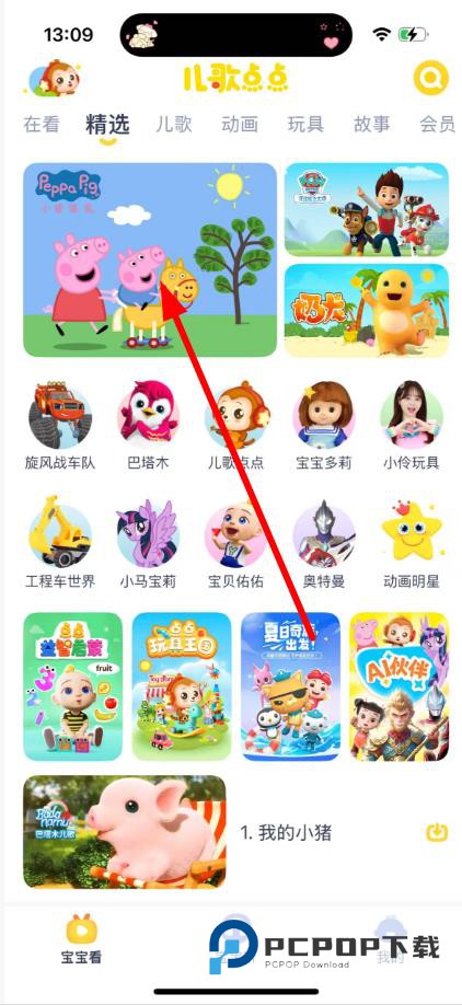 1、在【宝宝看】页面点击想要下载的动画片,如【小猪佩奇】。