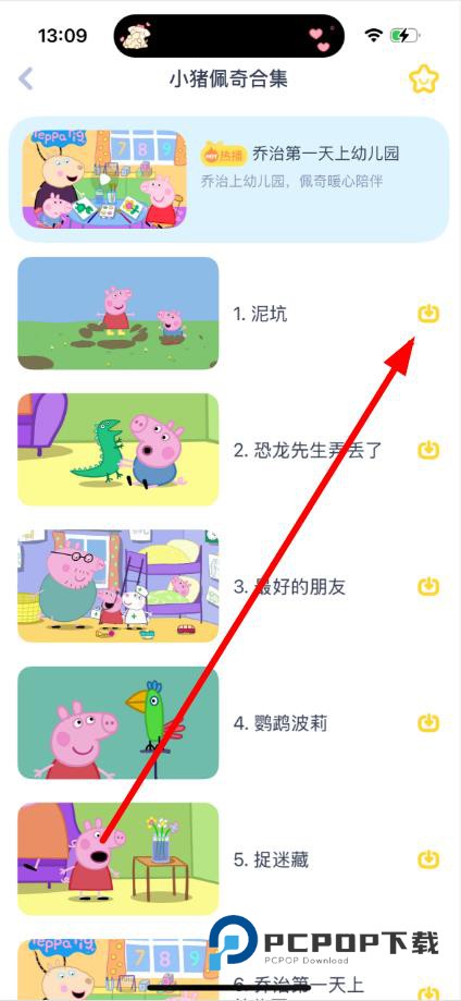 2、进入动画片合集页面后,点击视频右侧下载图标下载对应视频。