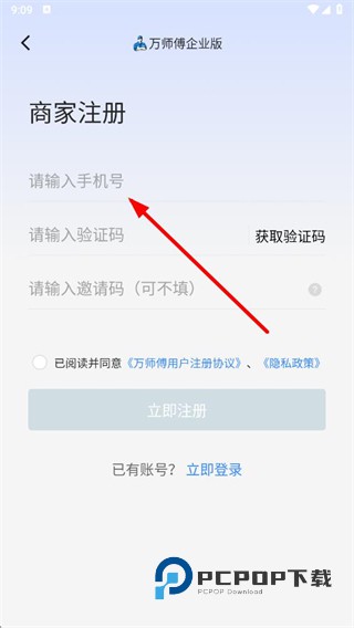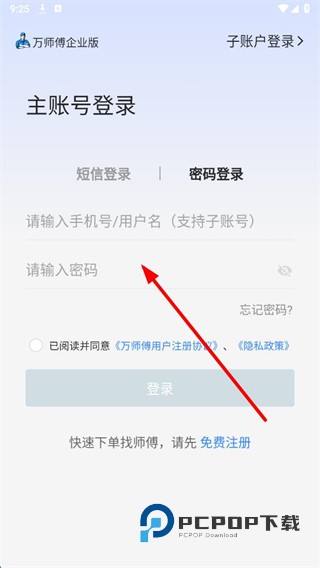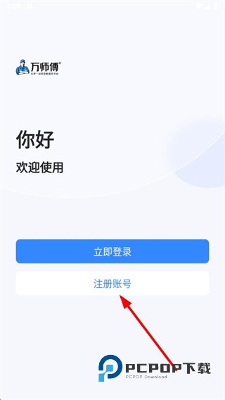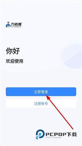 1、在万师傅欢迎页面,点击立即登录按钮,进入主账号登录页面。