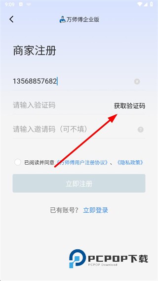 3、点击获取验证码按钮,输入收到的验证码。