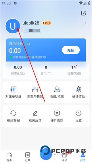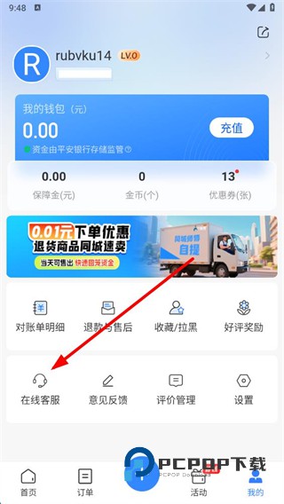 2、在个人页面中,点击在线客服选项。