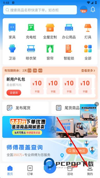 支持家具、卫浴等多种服务类目以及配送、安装等多种服务类型下单。