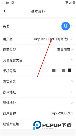 3、在基本资料页面,找到用户名选项并点击。