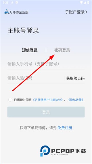 2、在主账号登录页面,点击密码登录选项,切换到密码登录界面。