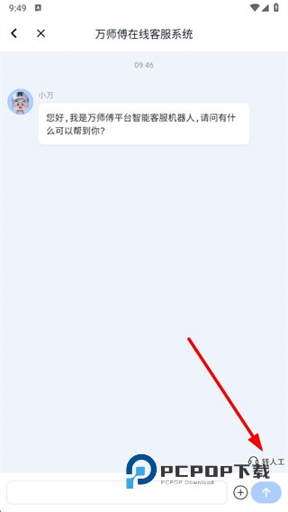 3、进入万师傅在线客服系统后,点击右下角转人工按钮。