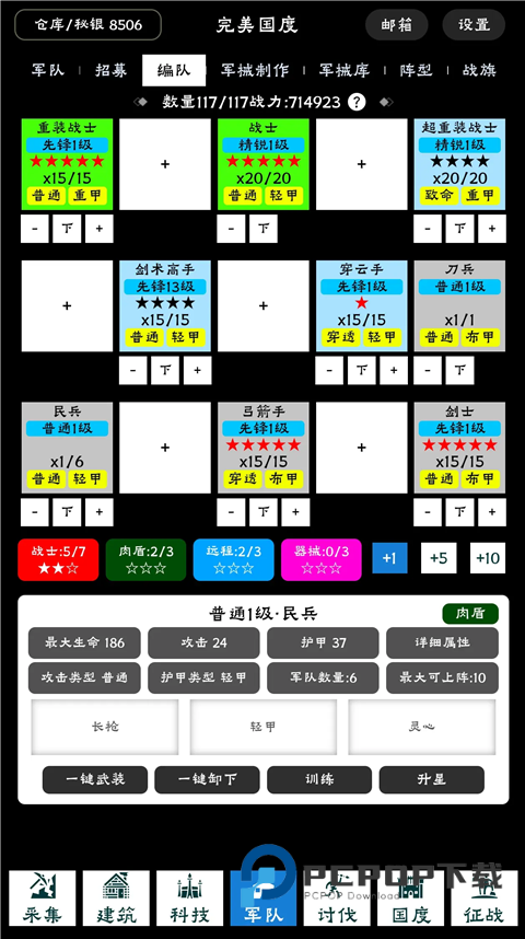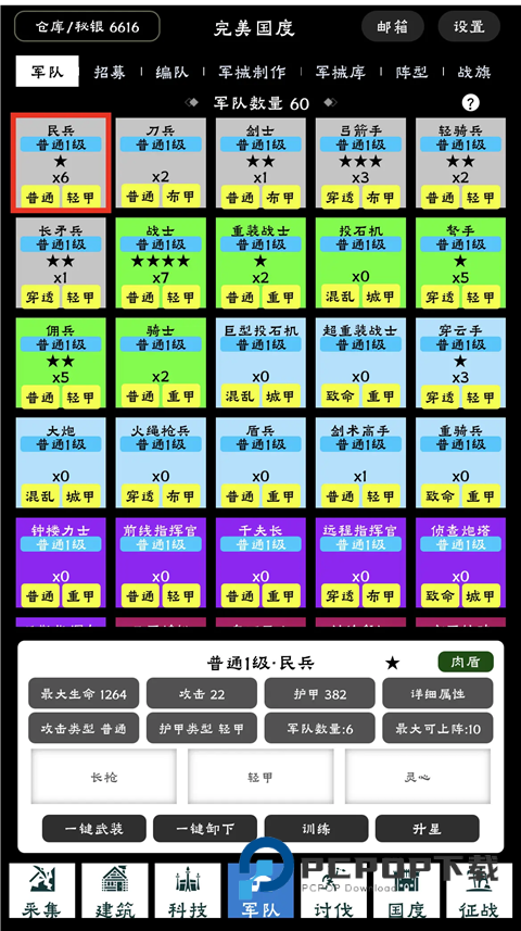 完美国度手游还引入国战玩法,玩家解锁了剑士、弓箭手、长矛兵等各种兵种后,就可以指挥不同兵种进行国家掠夺,抢占资源。游戏采用点击式玩法,玩家只需点击对应资源、设施方块以建造生产,操作简单,快在完美国度中开启你无尽掠夺的时代。