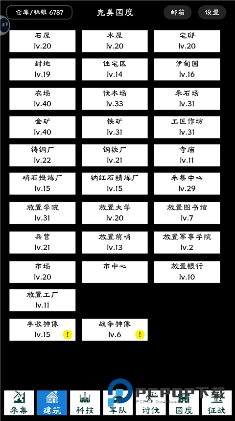 首先优先木材、石头矿,点到11,同步点满石屋、木屋。而后开科技,升级农场、金矿、铁矿、工匠作坊等,慢慢都升级到21级。