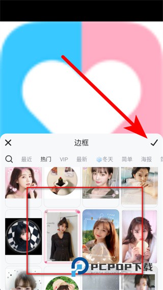 4、在边框选择界面,选择喜欢的边框样式后,点击右上角的对勾确认,即可为图片添加边框。