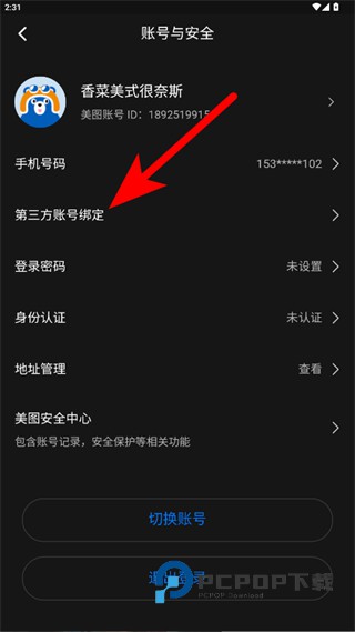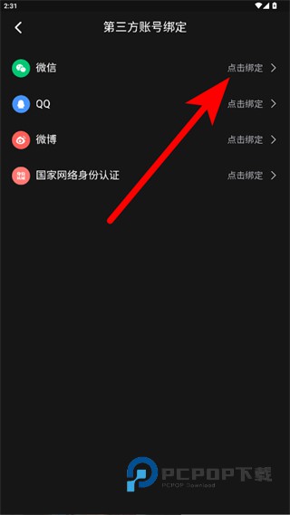 5、进入第三方账号绑定页面后点击微信右侧的点击绑定,按照提示完成微信账号的绑定操作。